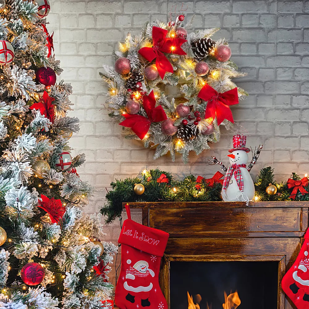 Brighten your holiday décor with this 24-inch pre-lit Christmas wreath. Featuring 30 LED lights and lush artificial greenery, it’s perfect for front doors, walls, mantles, or tabletops. Lightweight and durable, this wreath adds festive charm and a warm glow to any indoor or outdoor space.