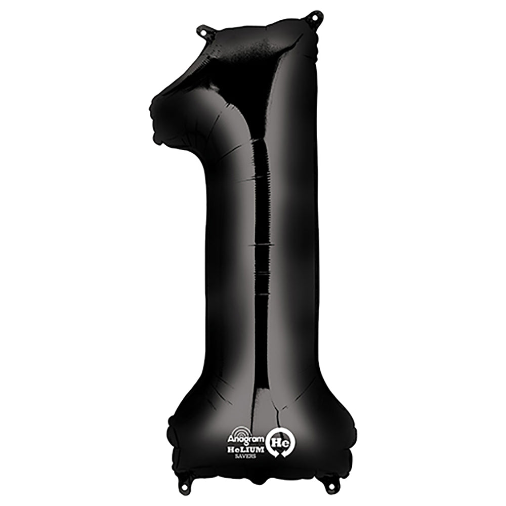 Quantity: 1SuperShapeOur 34" Anagram Number 1 - Black foil mylar number balloons are the ultimate way to celebrate someone's birthday, a couple's anniversary, the anniversary of a business and for marketing a special priced product at a business! These huge balloons are great for bouquets, photo backdrops, on the top of balloon columns, incorporated into a balloon arches and more. Add color coordinating mylars and latex balloons for the ultimate balloon bouquet! This balloon includes a self-sealing valve, preventing the gas from escaping after it's inflated. The balloon can be inflated with helium to float or with a balloon air inflator to hang. Balloon arrives uninflated. 34" Number 1 - Black Balloon by Anagram