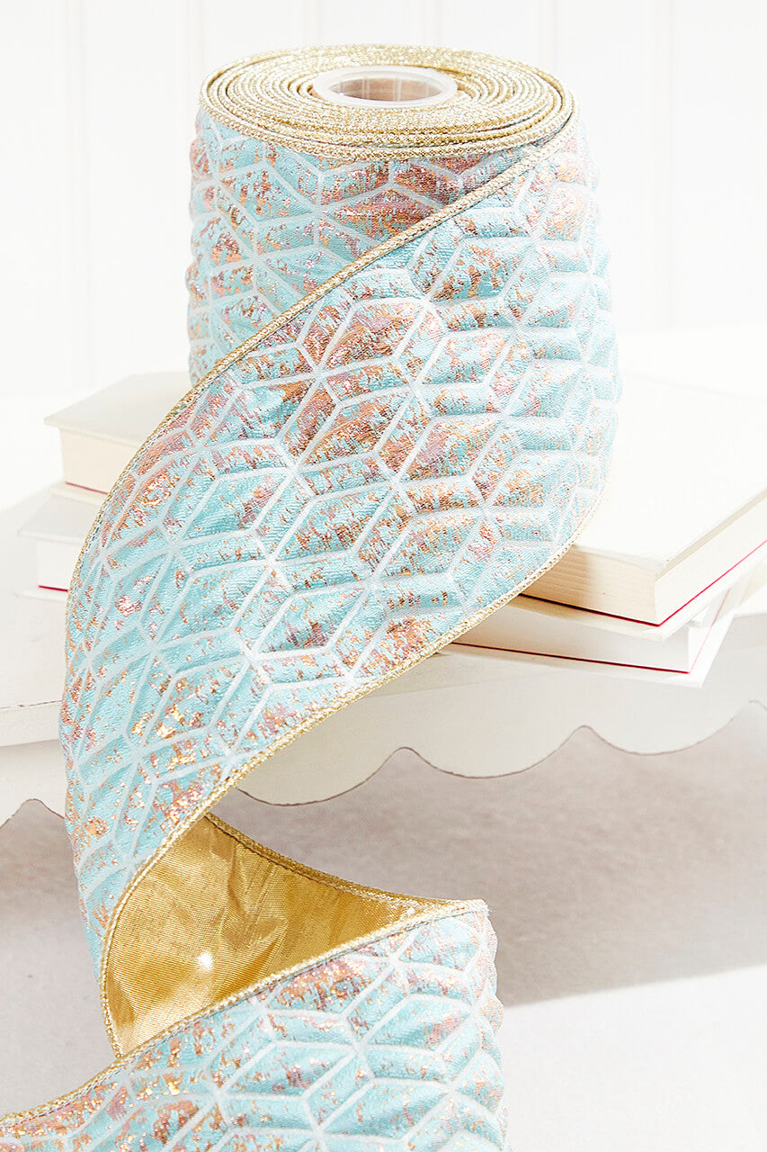 4” x 5 Yard Aqua Chadwick Metallic Dupioni Back Ribbon for Holiday Decor