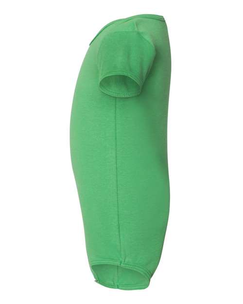 - 3/8" self-fabric trim applied to neckline, sleeves and leg opening