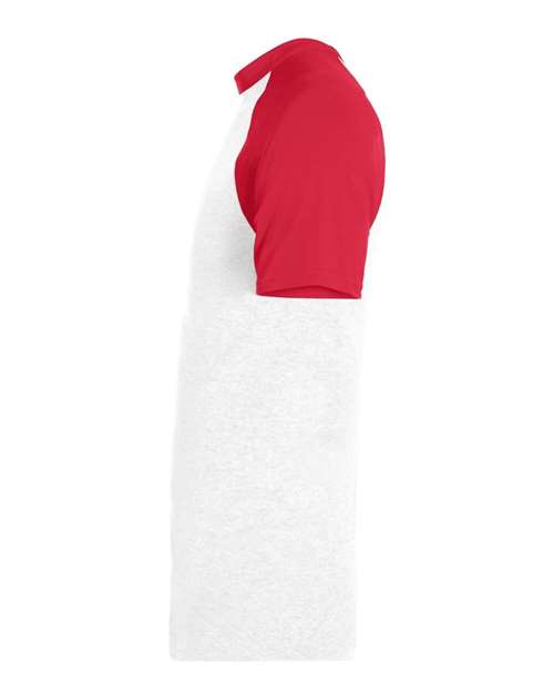 - Contrast-color raglan sleeves