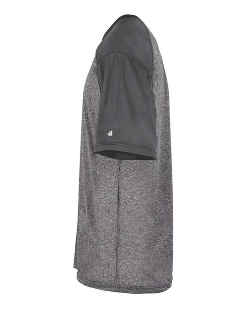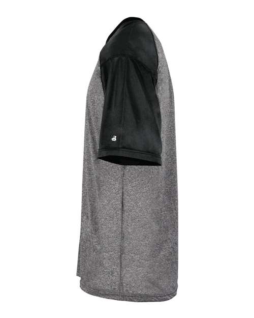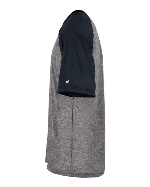 - 100% heathered polyester moisture-management/antimicrobial performance fabric body