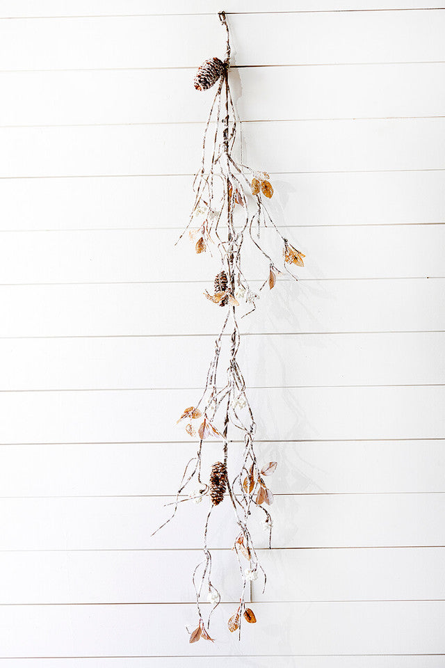 48" Snow Glitter Winter Chalet Garland Frosted Natural Holiday Decor