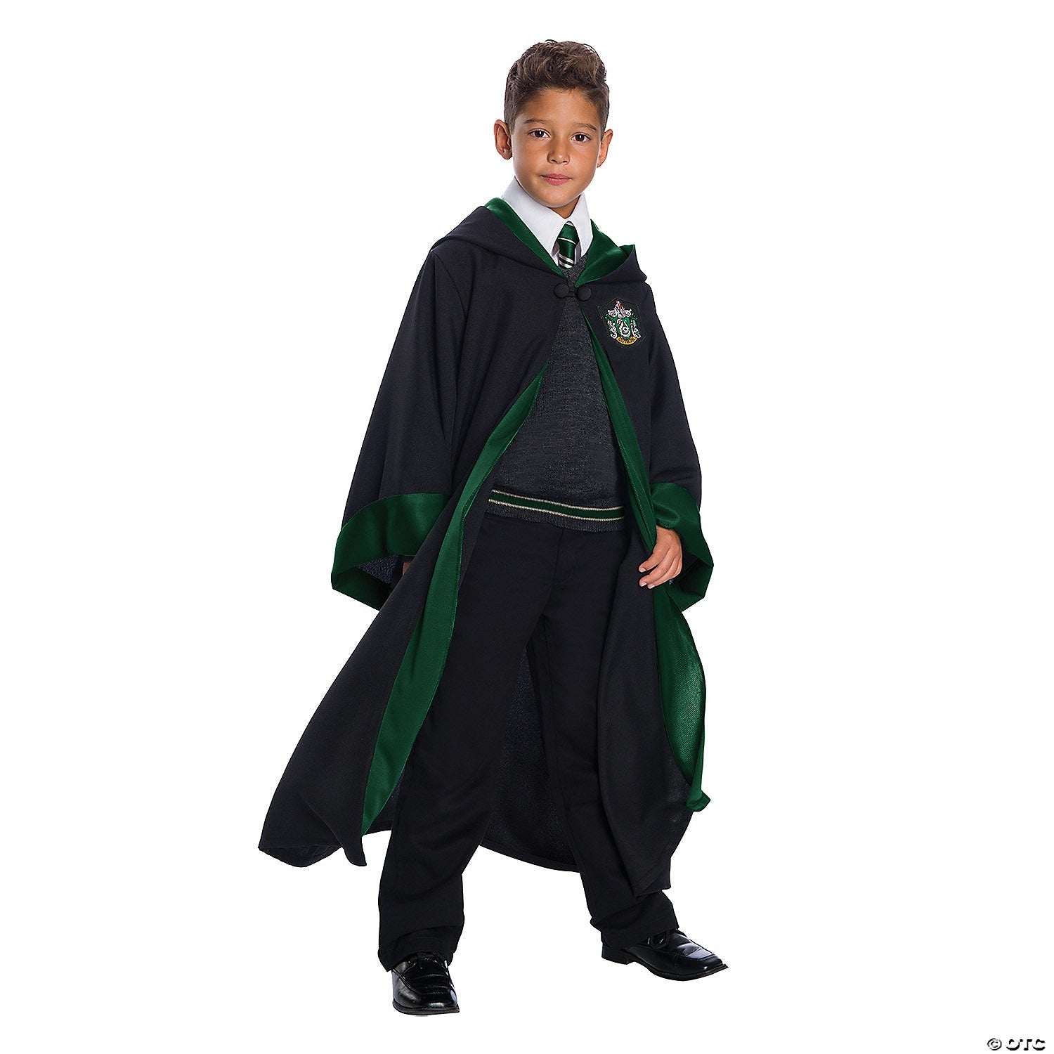 Look just like you stepped out of your favorite Harry Potter movie with this great new Slytherin student set! Slytherins tend to be ambitious, shrewd, cunning, strong leaders, and achievement-oriented. They also have highly developed senses of self-preservation. This means that Slytherins tend to hesitate before acting, so as to weigh all possible outcomes before deciding exactly what should be done. This set includes robe, deluxe heather knit sweater, and deluxe tie. Add your own shirt and pants.All HARRY POTTER characters, names and related indicia are TM and Warner Bros. Entertainment Inc., WBSHIELD TM and WBEI JK ROWLING'S WIZARDING WORLD. JKRowling and Warner Bros. Entertainment Inc. Publishing Rights JKR