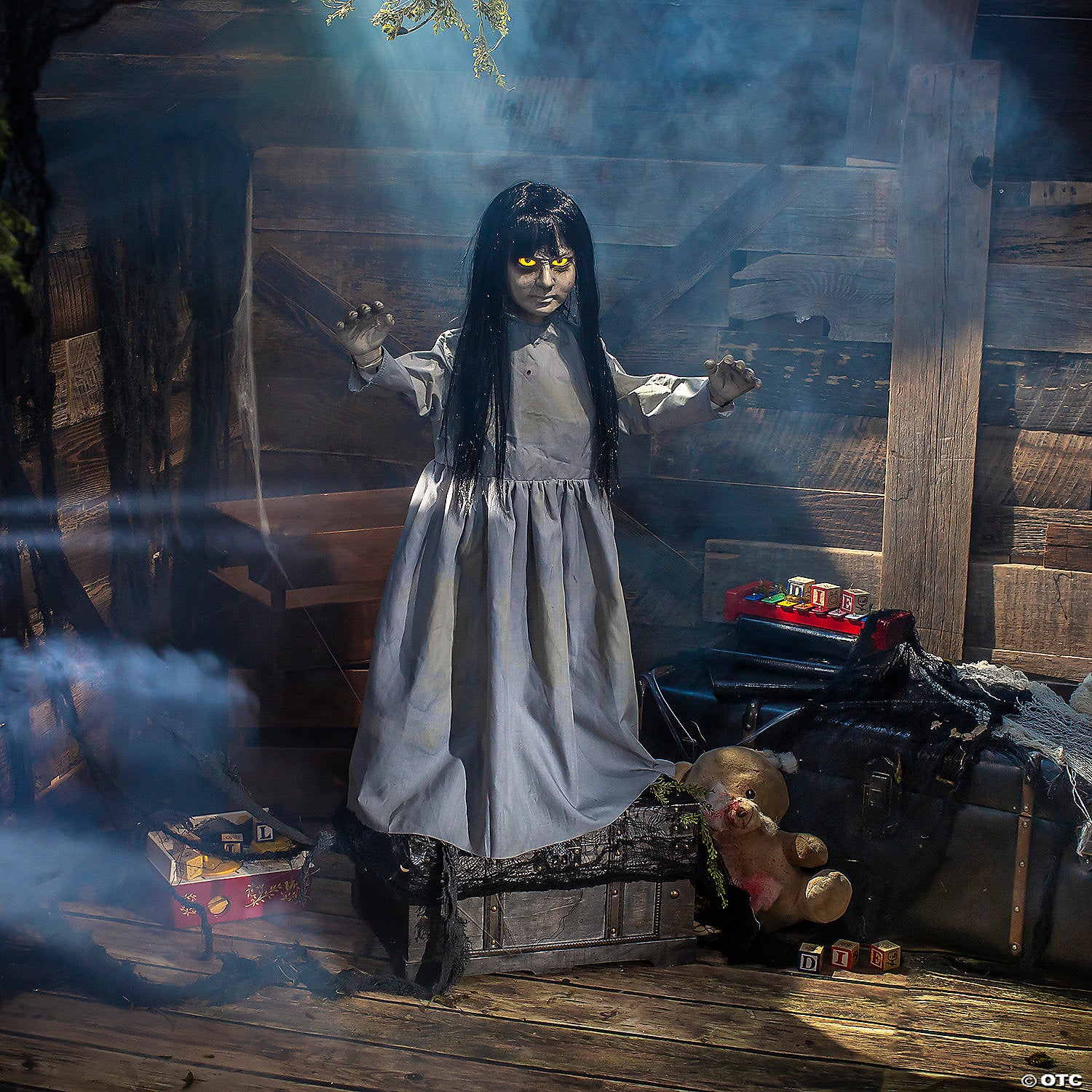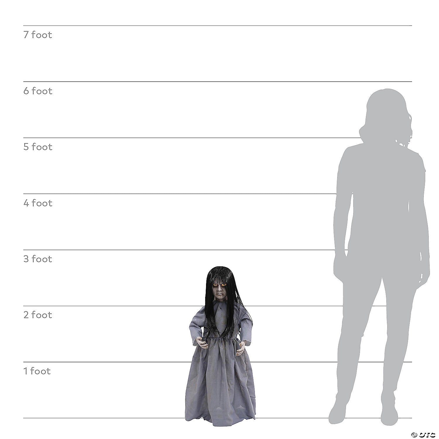 Angry, haunting little girl with dark-circled eyes that fade on and off. Standing 32 inches tall, she is dressed in a dingy gray dress and has poseable arms. She says one of three 9-second phrases with each activation of her motion/light sensor: "While you stayed away, I could tolerate you. Now that you are here you better be afraid!" "Crows and maggots picked at my flesh, not fun. It is an experience I hope to share with you." "Your living happiness sickens me. Hell hath no fury like a little girl scorned."She's a frighteningly fun addition to your home Halloween decorations and a great haunted house prop!Special Shipping Information: This item ships separately from other items in your order. Imported.Lil Sweet Vengeance Instructions
