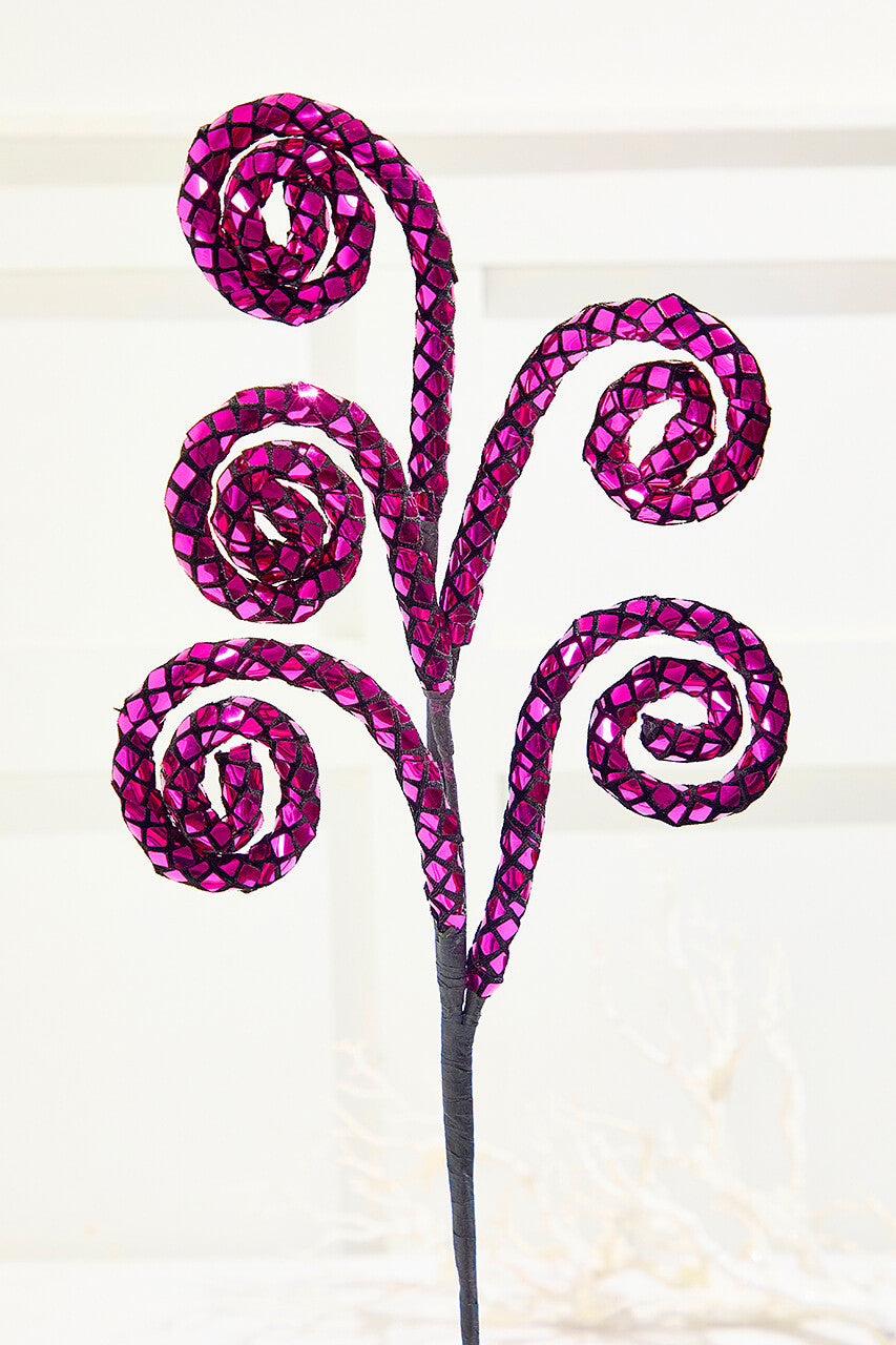 - Add vibrant, playful energy to your Halloween décor with this 28-inch Disco Spiral Curly Spray. Featuring fuchsia hues, black stripes, and whimsical curls, it brings movement, color, and festive flair to wreaths, garlands, or centerpiece arrangements. Perfect for bold, unique, and eye-catching seasonal displays.