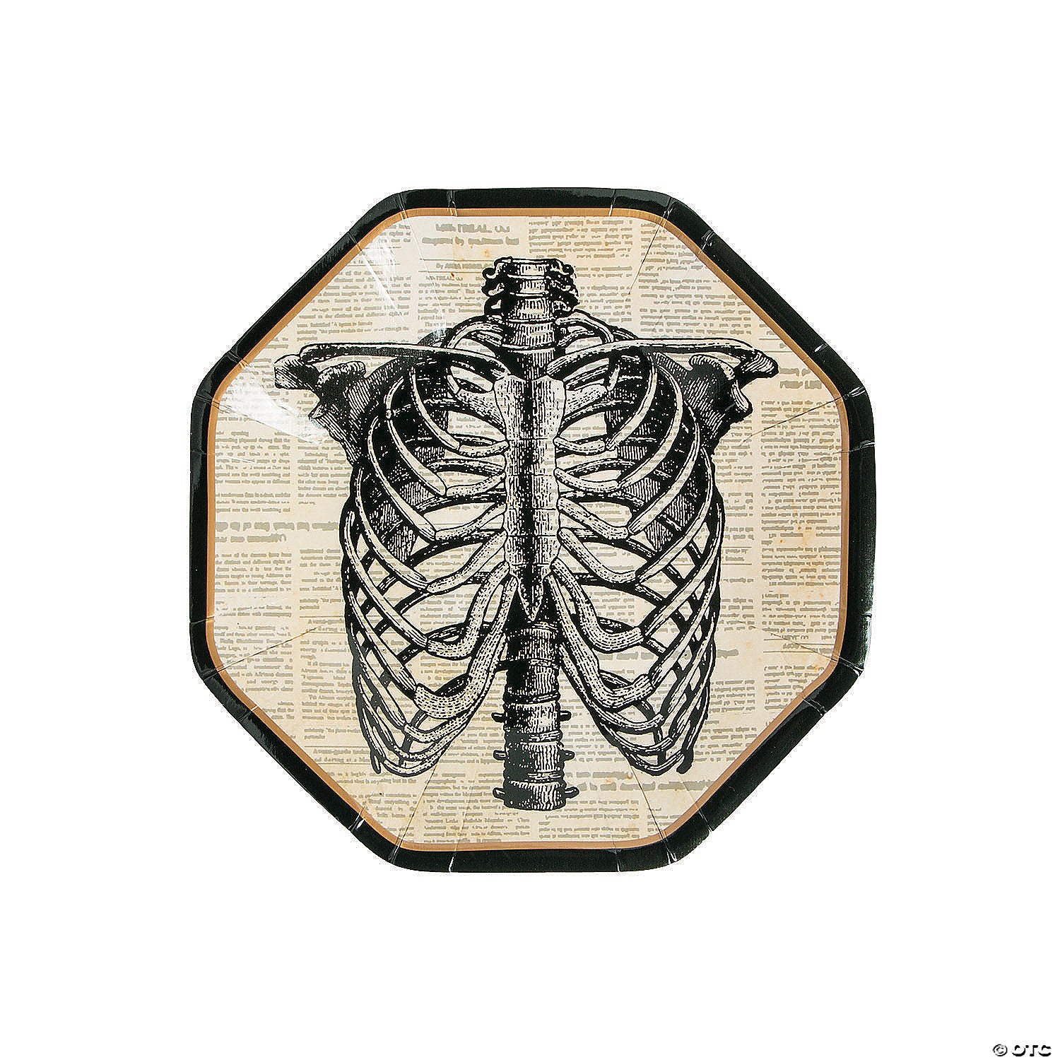 Serve up some spooky snacks and desserts at your Halloween party with these skeleton dessert plates. Featuring the torso of a skeleton, this vintage-looking plate can handle all the sweets you can give it! Complete the set with our full Vintage Halloween party supplies! Paper. (8 pcs. per unit) 7"