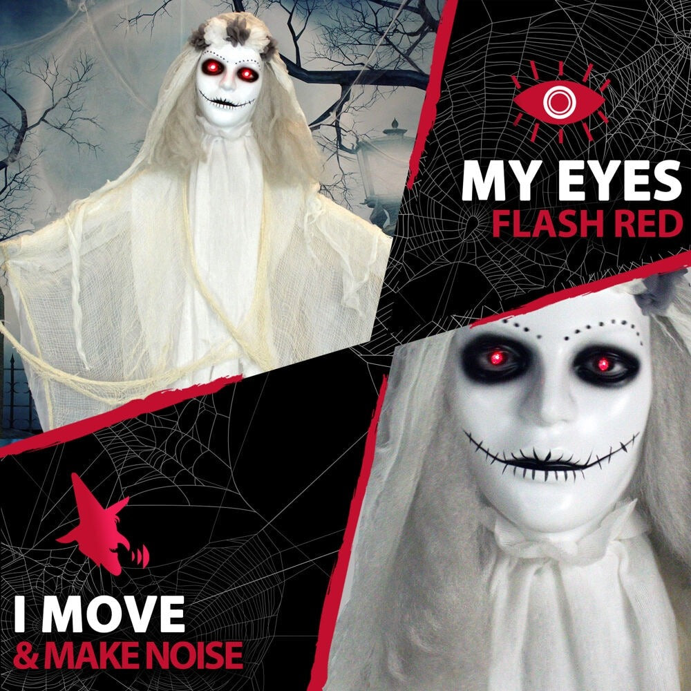 • 6-ft freestanding Adelaide Ghost animatronic for impressive Halloween décor