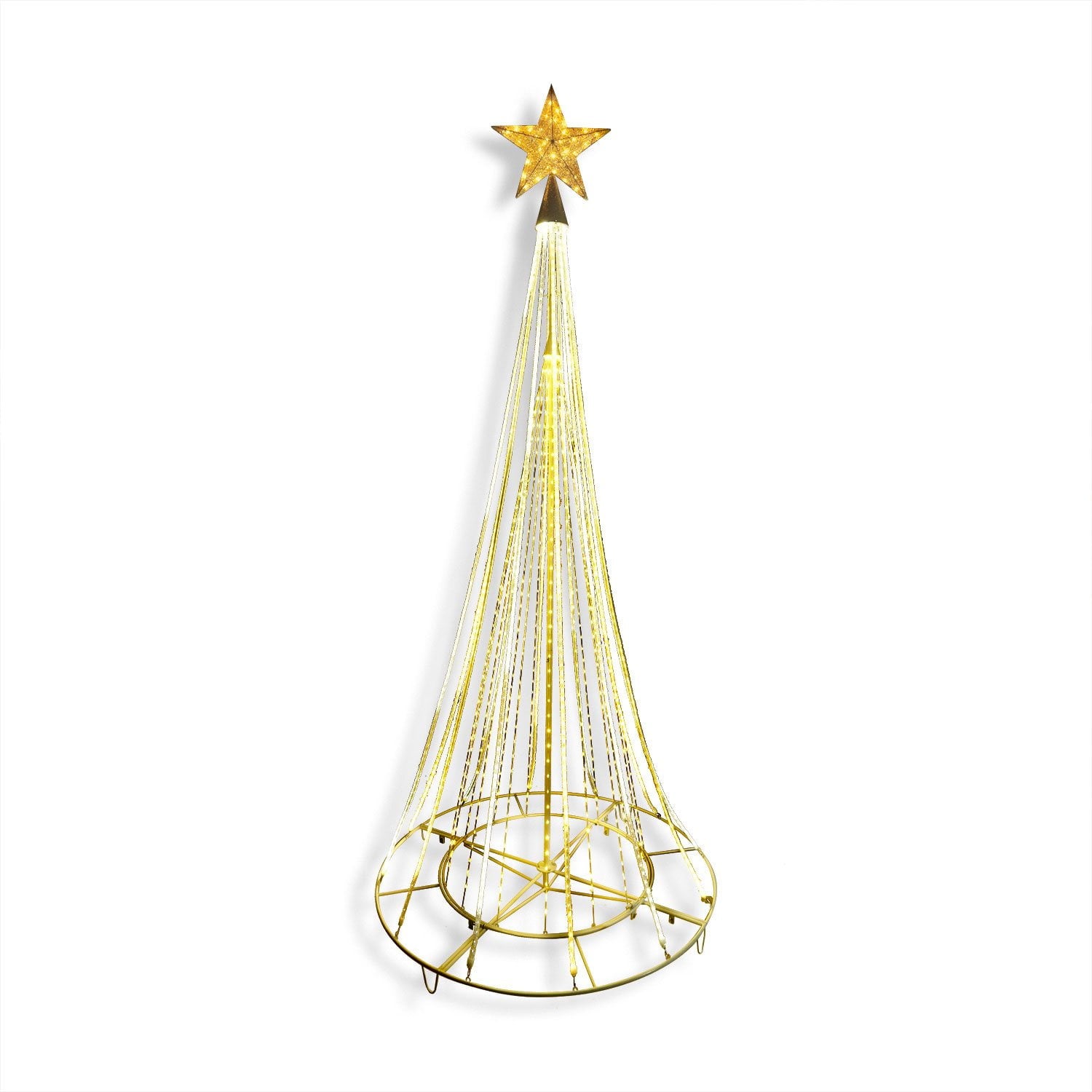 - Designed for both indoor and outdoor settings, this 10' shooting star tree includes four yard stakes for stability in your yard. A 5-foot lead cord with a UL-approved plug provides flexibility for placement, making it perfect for porches, entryways, or party spaces.