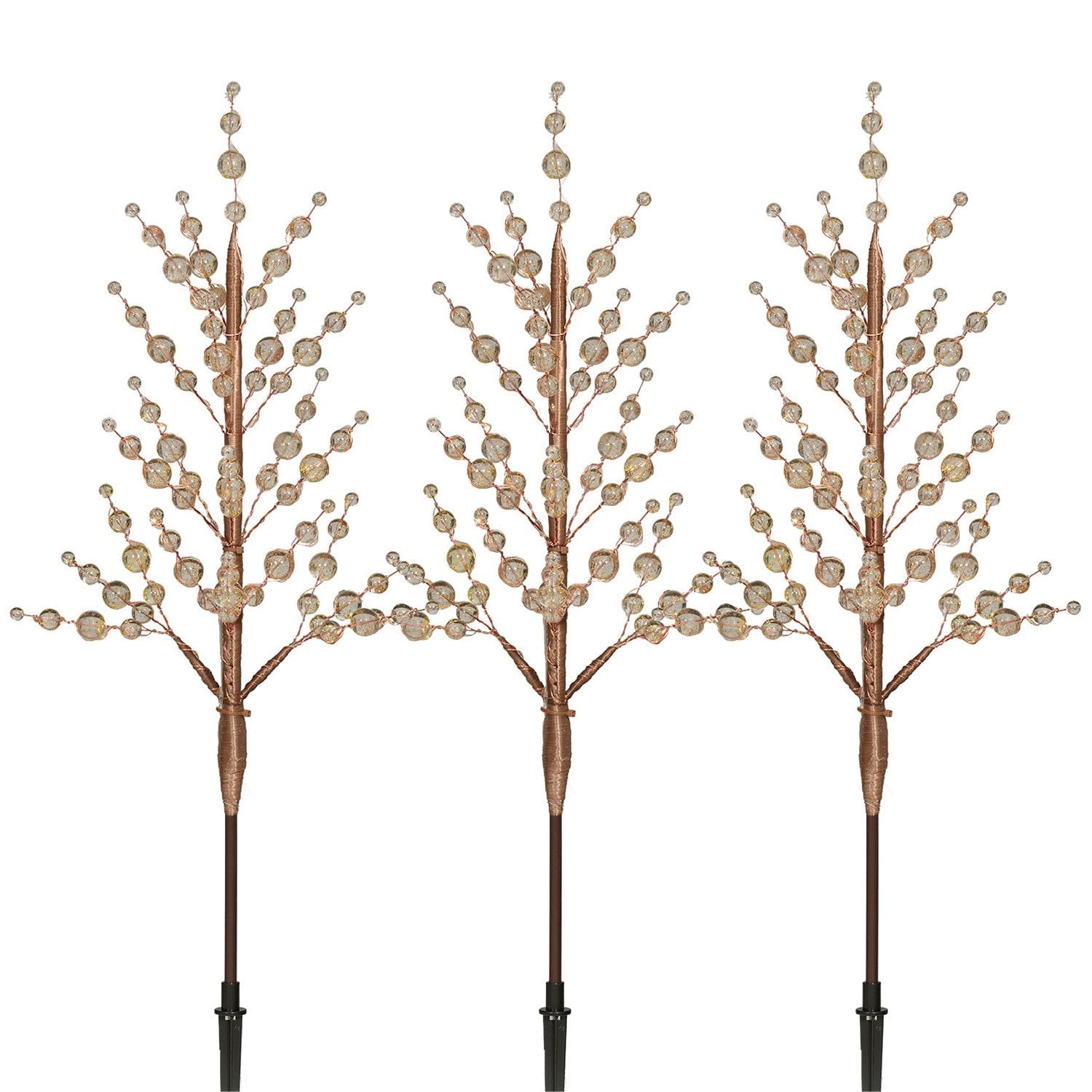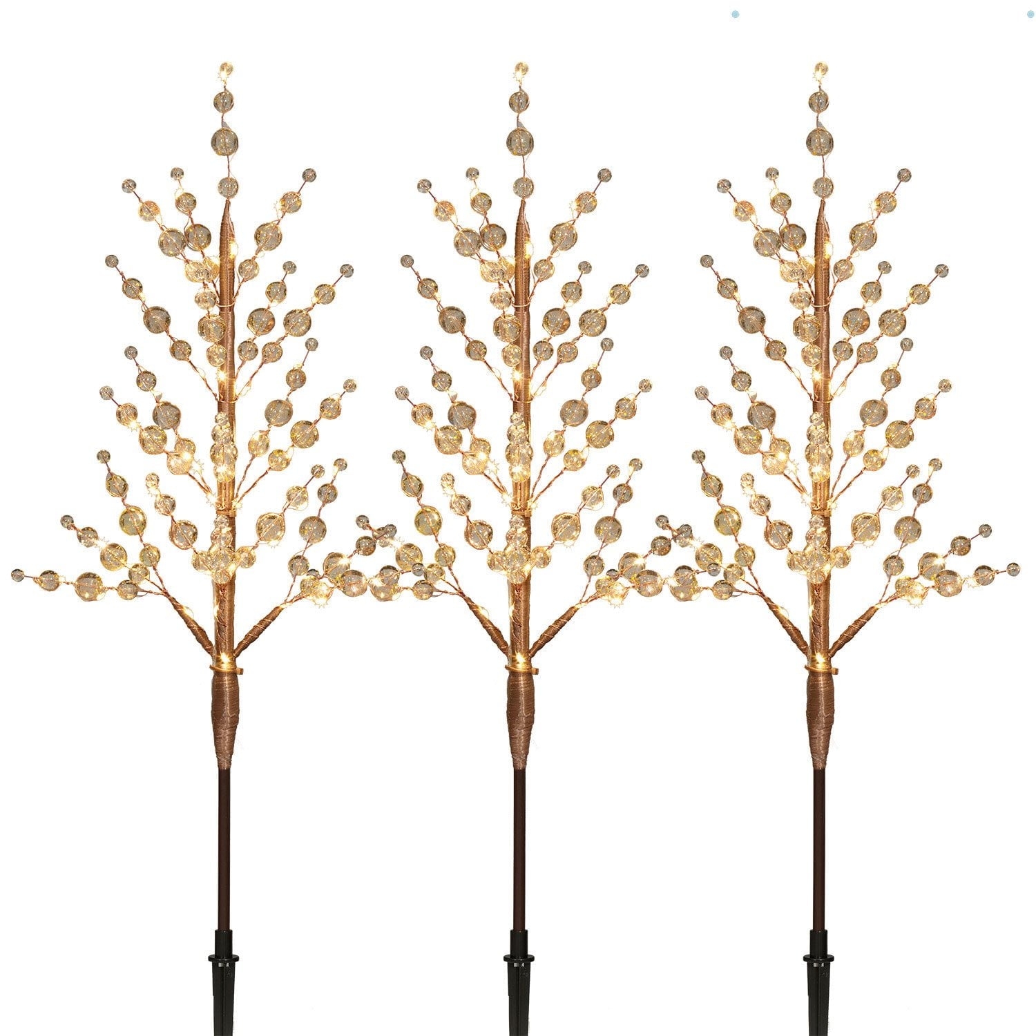 • The Member's Mark Set of 3 Crystal Beaded Pathway Lights brings a festive glow to your outdoor space. Exclusively available at Sam's Club, this set features three tree-shaped lawn stakes adorned with shimmering crystal beads and LED wire lights. Choose between warm white LED lights on brown trees or cool white LED lights on white trees to match your holiday decor.