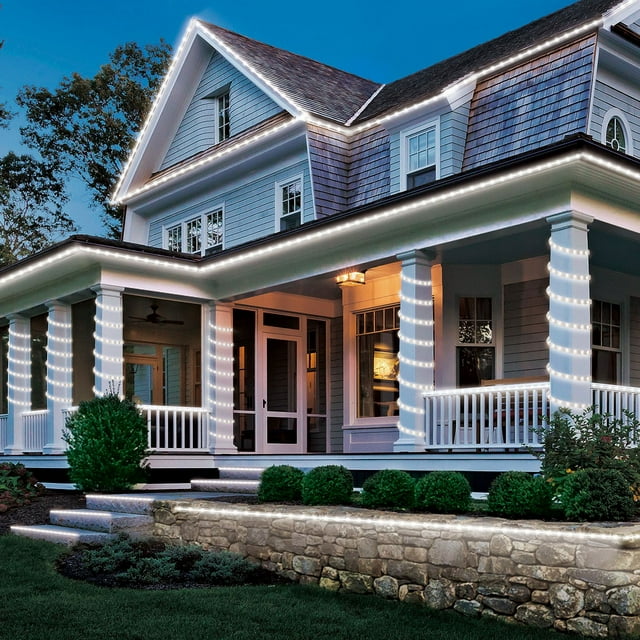 Recommended for both indoor and outdoor use, these tape lights provide a lighted length of 24 feet, making them ideal for decorating rooflines, windows, porches, bannisters, and more. Up to 4 sets can be connected for extended coverage. These environmentally friendly LED lights boast an average bulb life of 25,000 hours and offer 80% energy savings, ensuring long-lasting performance while reducing resource usage.