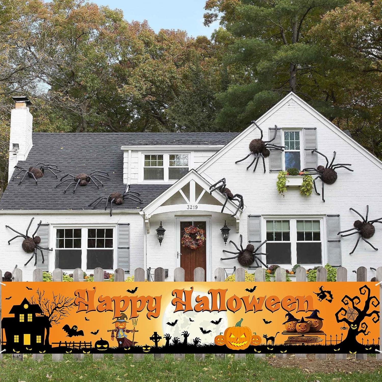 Outdoor Halloween Banner Large Fabric Pumpkin Yard | USA Decoration®
