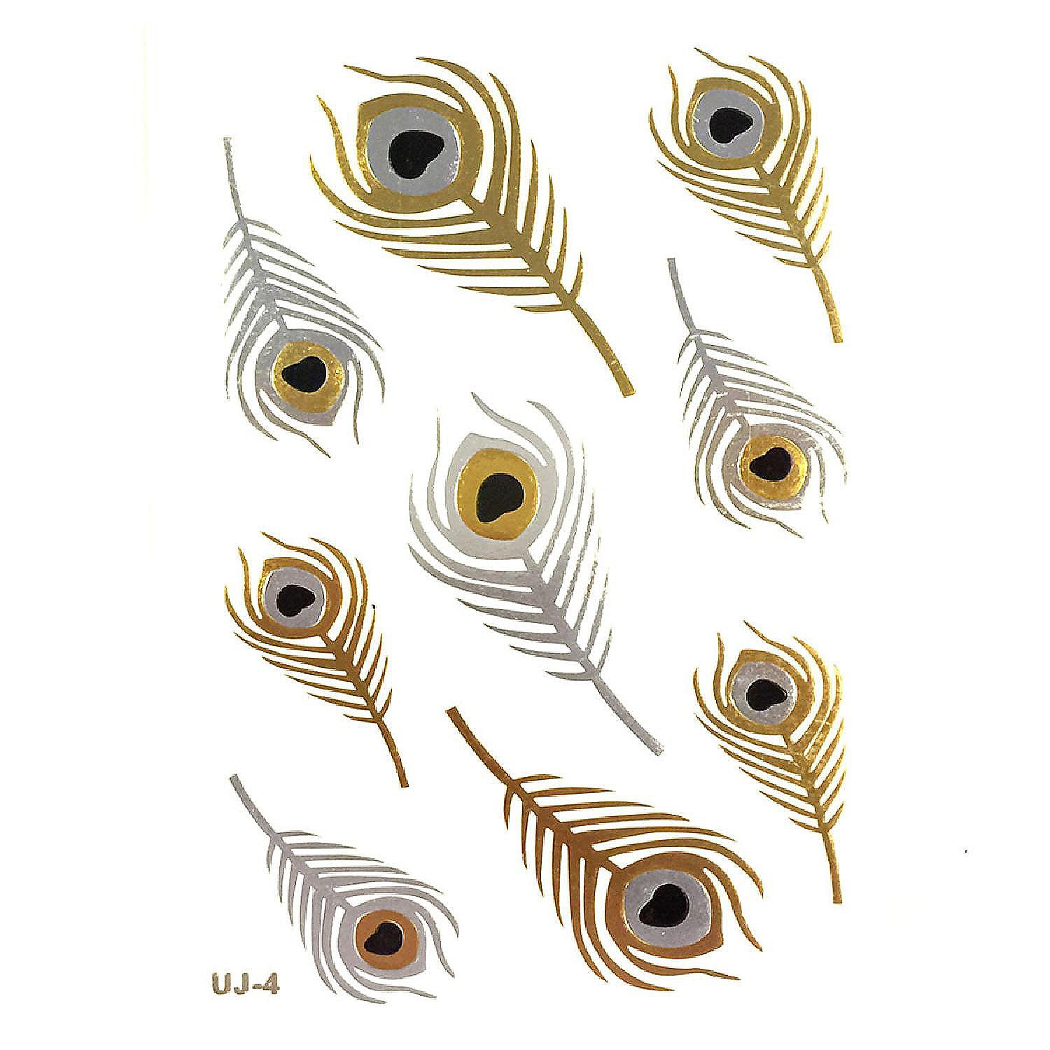 Wrapables Celebrity Inspired Temporary Tattoos in Metallic Gold Silver and Black, Large, Pheasant Feathers